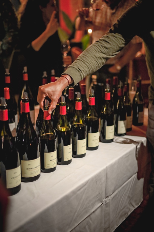 The tribute began with an aperitif in Culture Wine Bar, before guests were ushered to Culture’s private members’ lounge, the Wine Library, which had been set up into three areas for the event. The first section saw 13 vintages of Crozes-Hermitage from 2019 – 1999 lined up. “It was more a retrospective of Alain’s work than a formal tasting”, explains Dale.